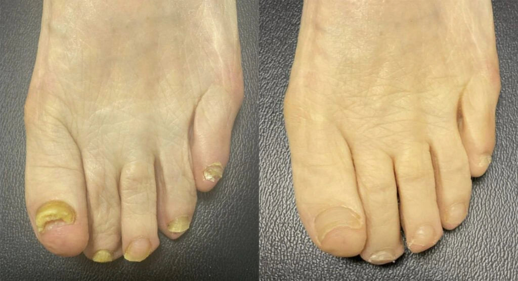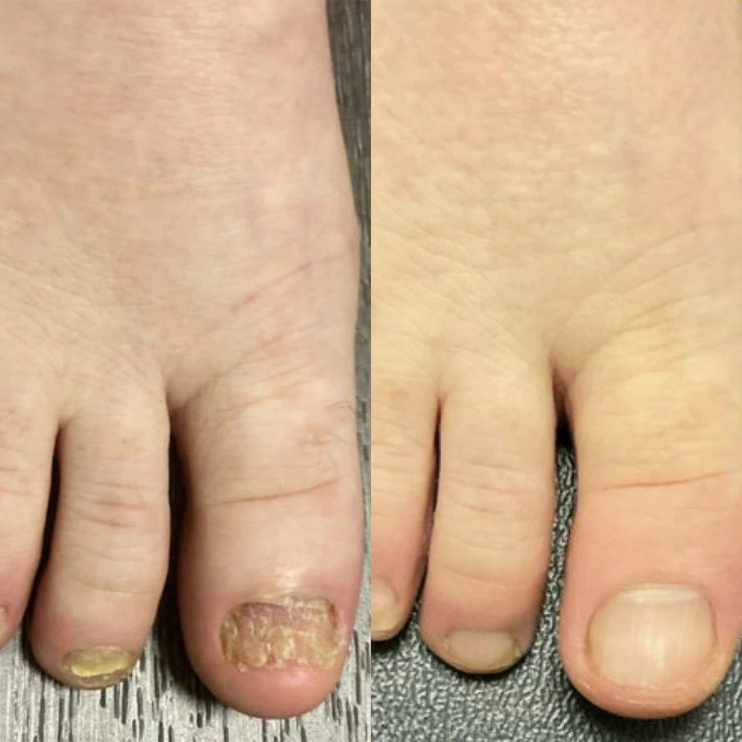Most customers notice the yellow or brown color starting to fade within 30 days. A healthy, clear nail will begin growing in at the base of your toe — that's the sign it's working.